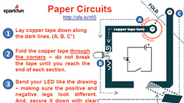 This quick craft project shows you how to create a circuit using copper tape instead of wire to light up an LED and make a wearable piece of e-craft art.