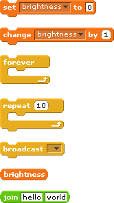 Code Block Examples This code snippet sets brightness to 0, then repeats 255 times