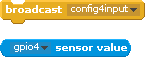 config[#][input/output/outputpwm] - [#] indicates the GPIO pin, [input/output/outputpwm] indicates the configuration setting of the pin. All pins defined as inputs will appear as sensor blocks and can be used accordingly.