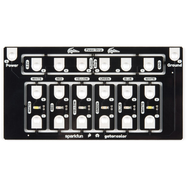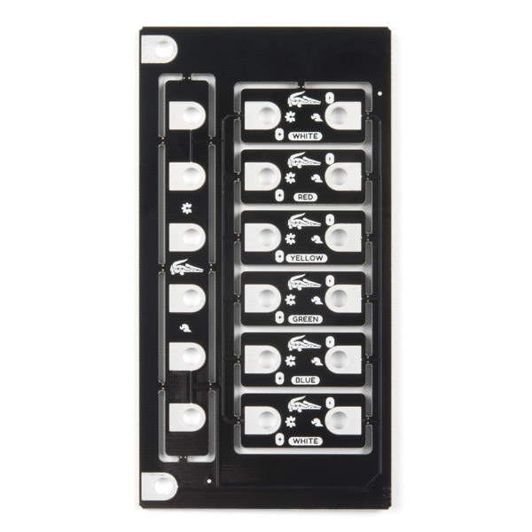 The SparkFun gator:color ProtoSnap is one of a series of gator-clippable accessories called gator:boards created to directly interface with the micro:bit. The gator:color ProtoSnap is perfect for adding low-profile, glowing components to a project. It is equipped with six LED boards that can be kept as a whole while on the ProtoSnap board, or broken apart for individual use.