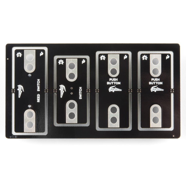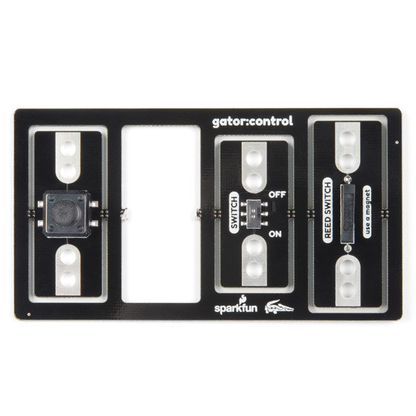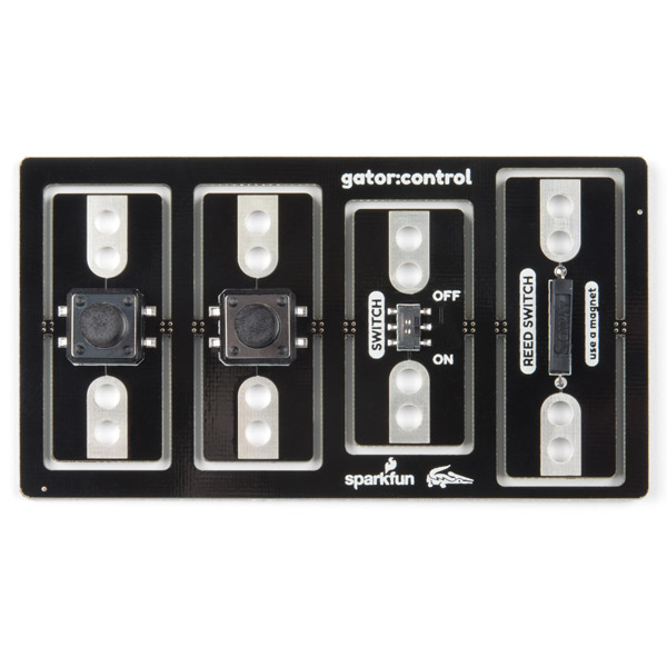 The gator:control ProtoSnap contains four boards in the main assembly including two buttons, an on/off slide switch and a reed switch, which is activated by a magnet. A button or switch is something that can act as both an open and closed circuit, and either one makes a great addition when looking to add control to project. Buttons or switches can be used as part of a circuit or as a digital input for micro:bit.