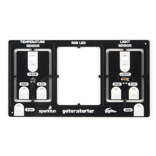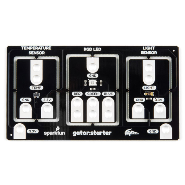 The SparkFun gator:starter ProtoSnap is one of a series of gator-clippable accessories called gator:boards that have been created to directly interface with the micro:bit and SparkFun gator:bit. The gator:starter ProtoSnap provides a staring point to go beyond the capabilities of the SparkFun gator:bit, with three different boards that can be kept as a whole or broken apart for individual use - a temperature sensor board, a light sensor board and an RGB LED board.